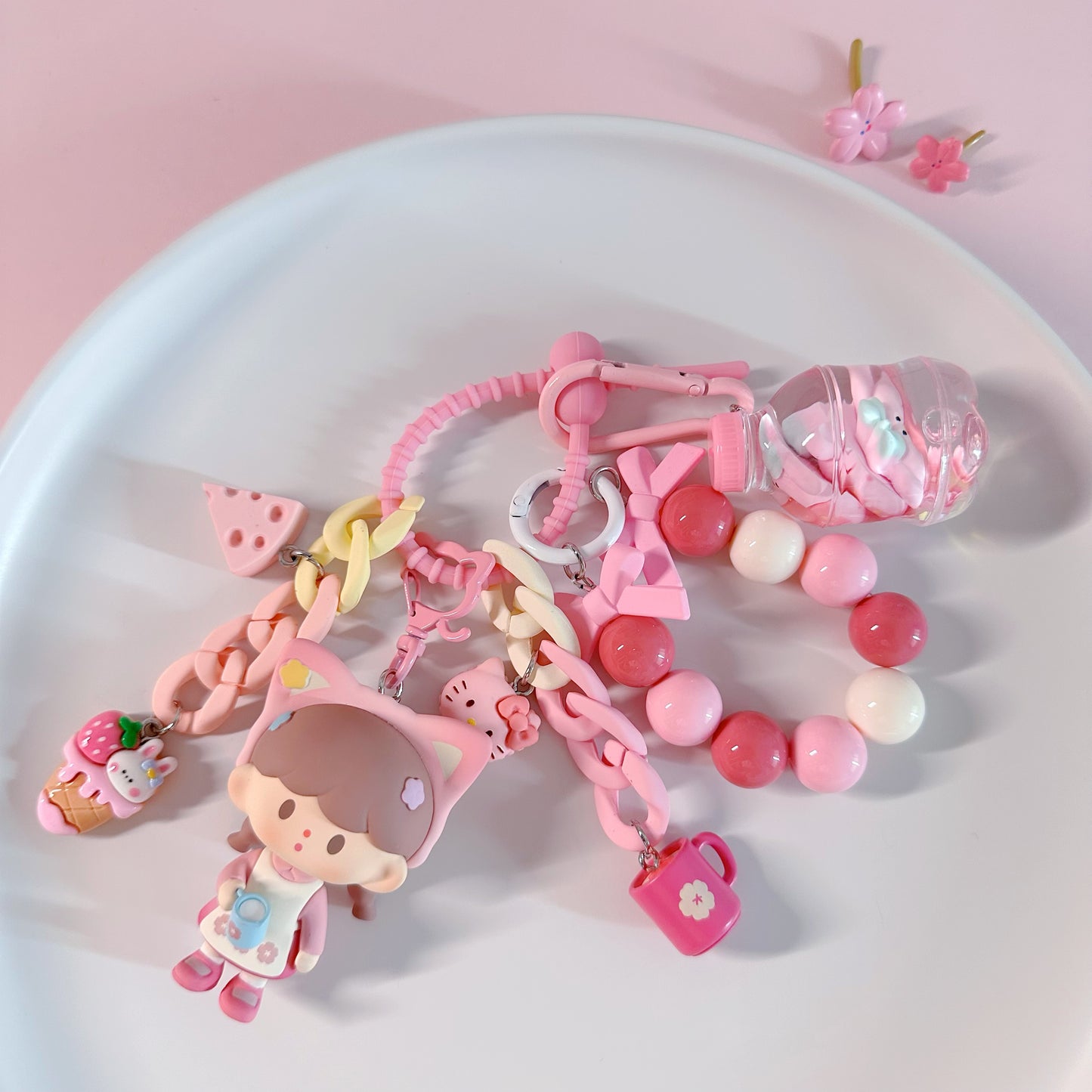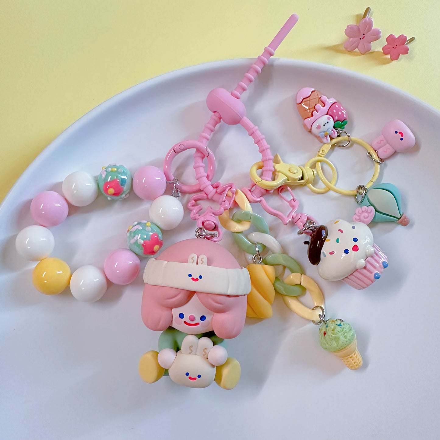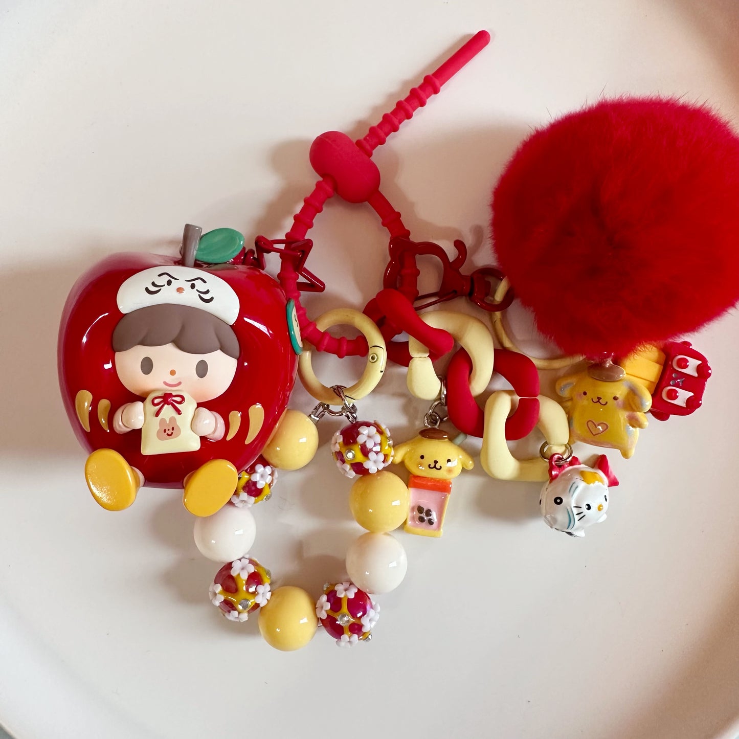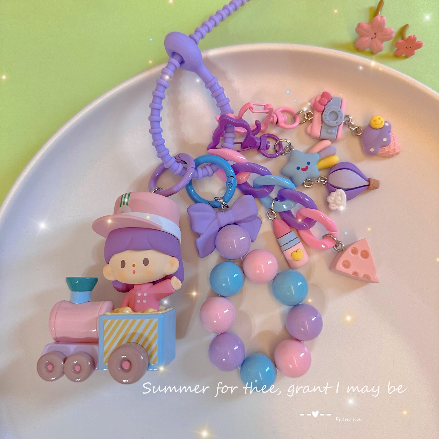 Hello, here ! This lovely key pendant is made by CloudDIY, please allow 5-7 days for preparation; It is strung together by different styles of charm, you can use it to hang on your bag, car upholstery, keychain decoration, very cute!