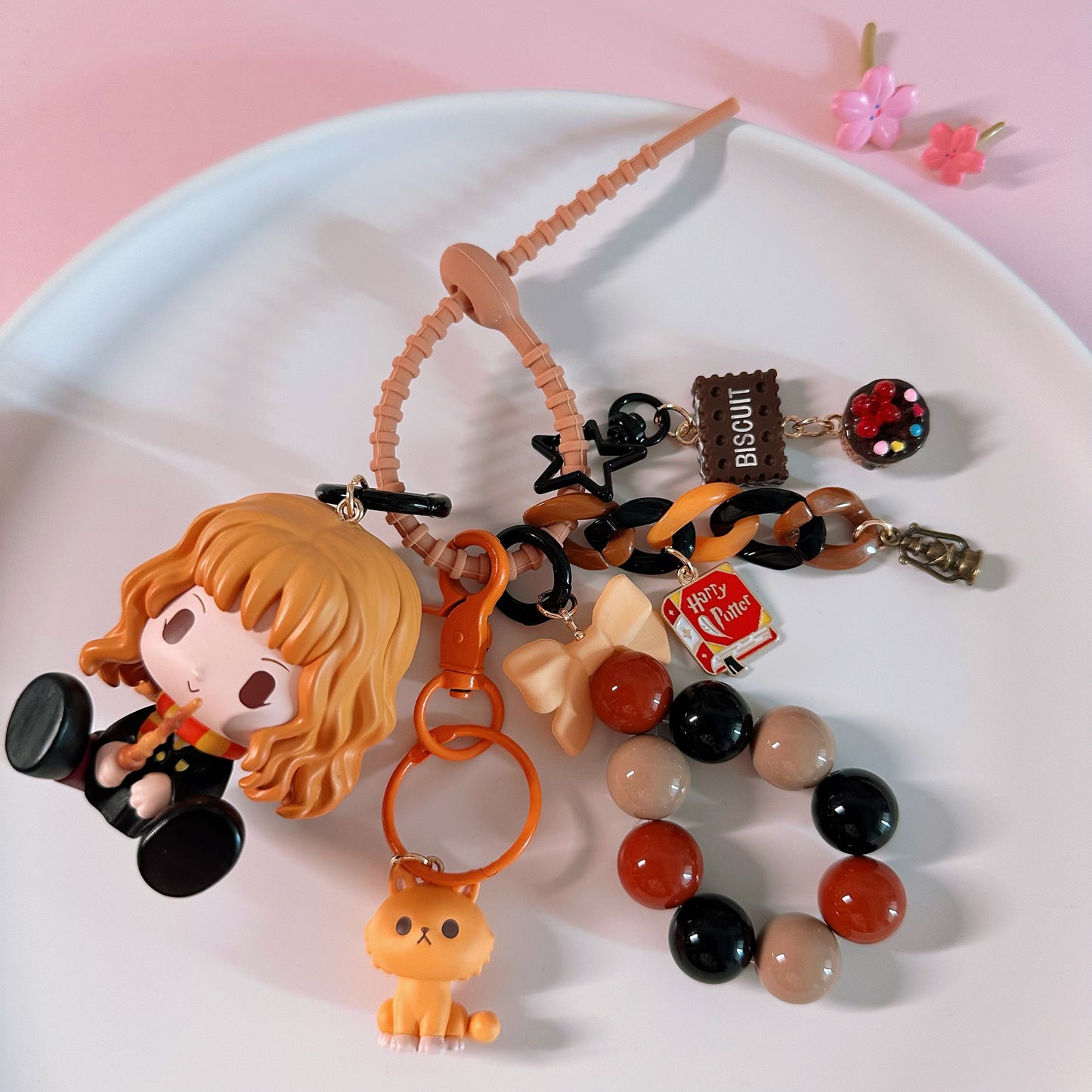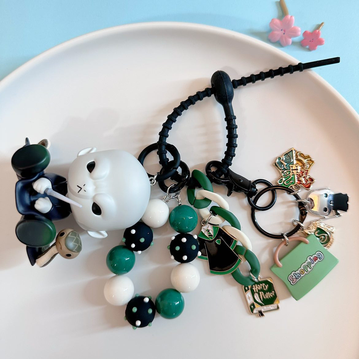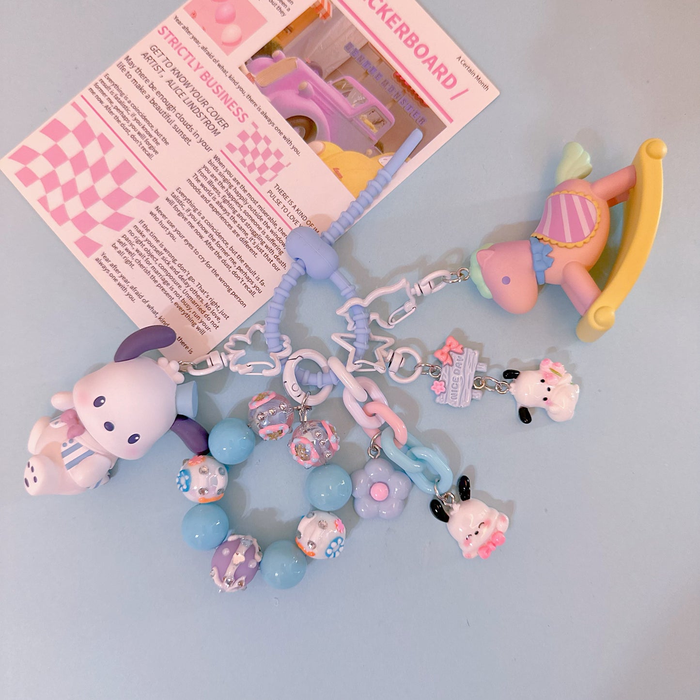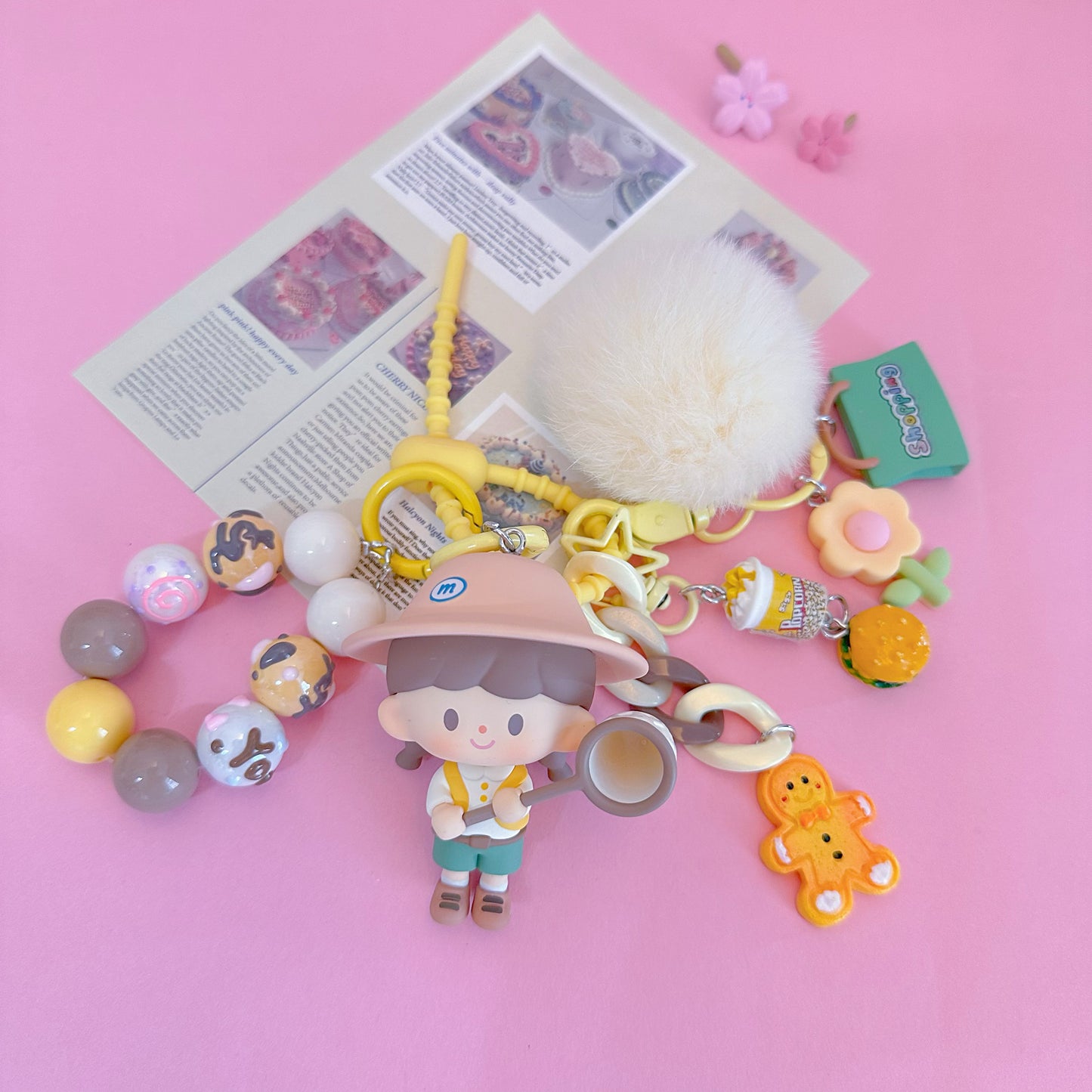 Hello, here ! This lovely key pendant is made by CloudDIY, please allow 5-7 days for preparation; It is strung together by different styles of charm, you can use it to hang on your bag, car upholstery, keychain decoration, very cute!