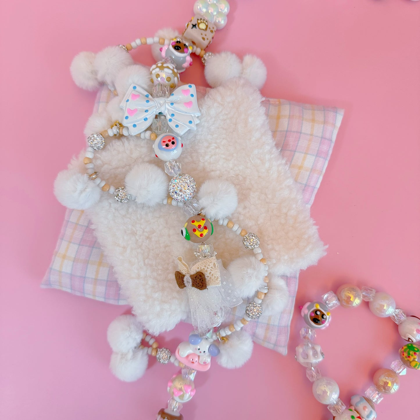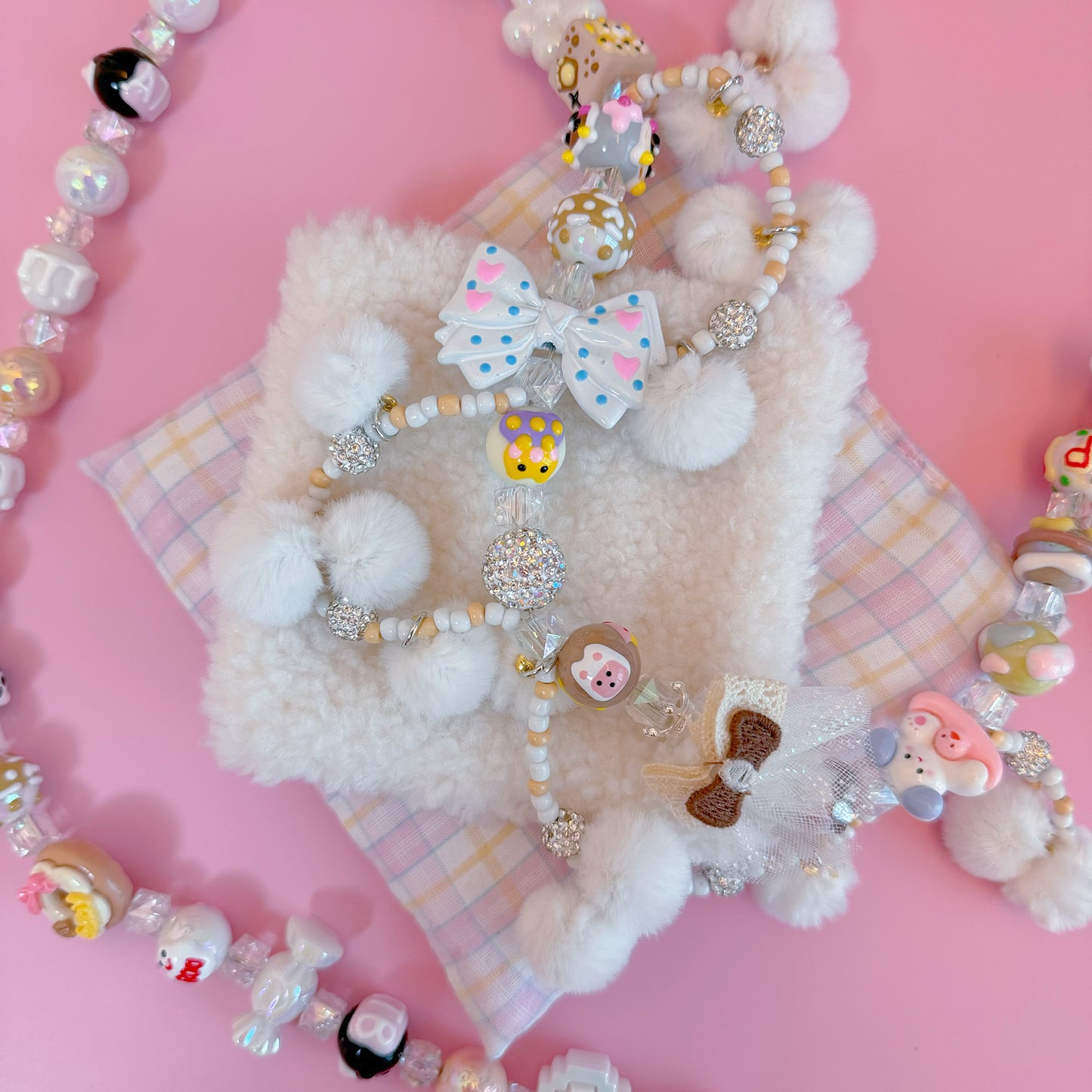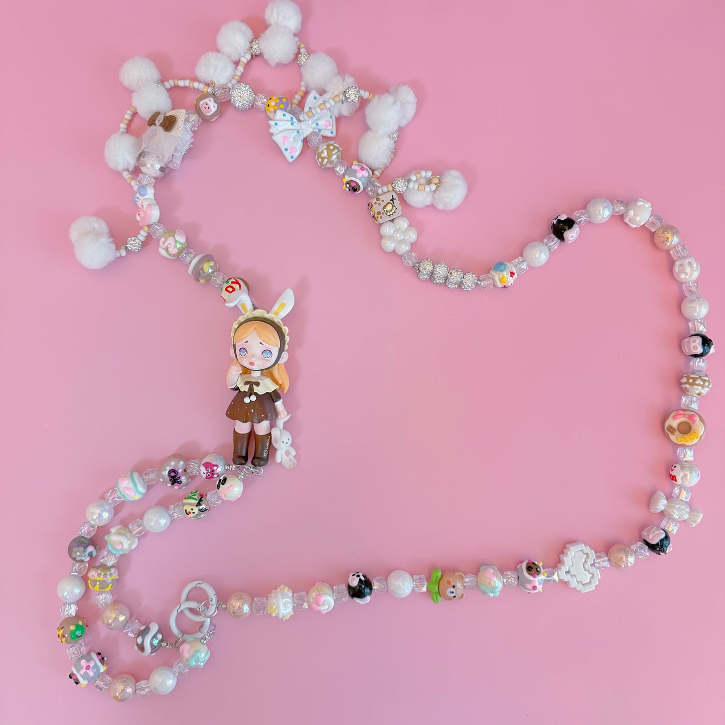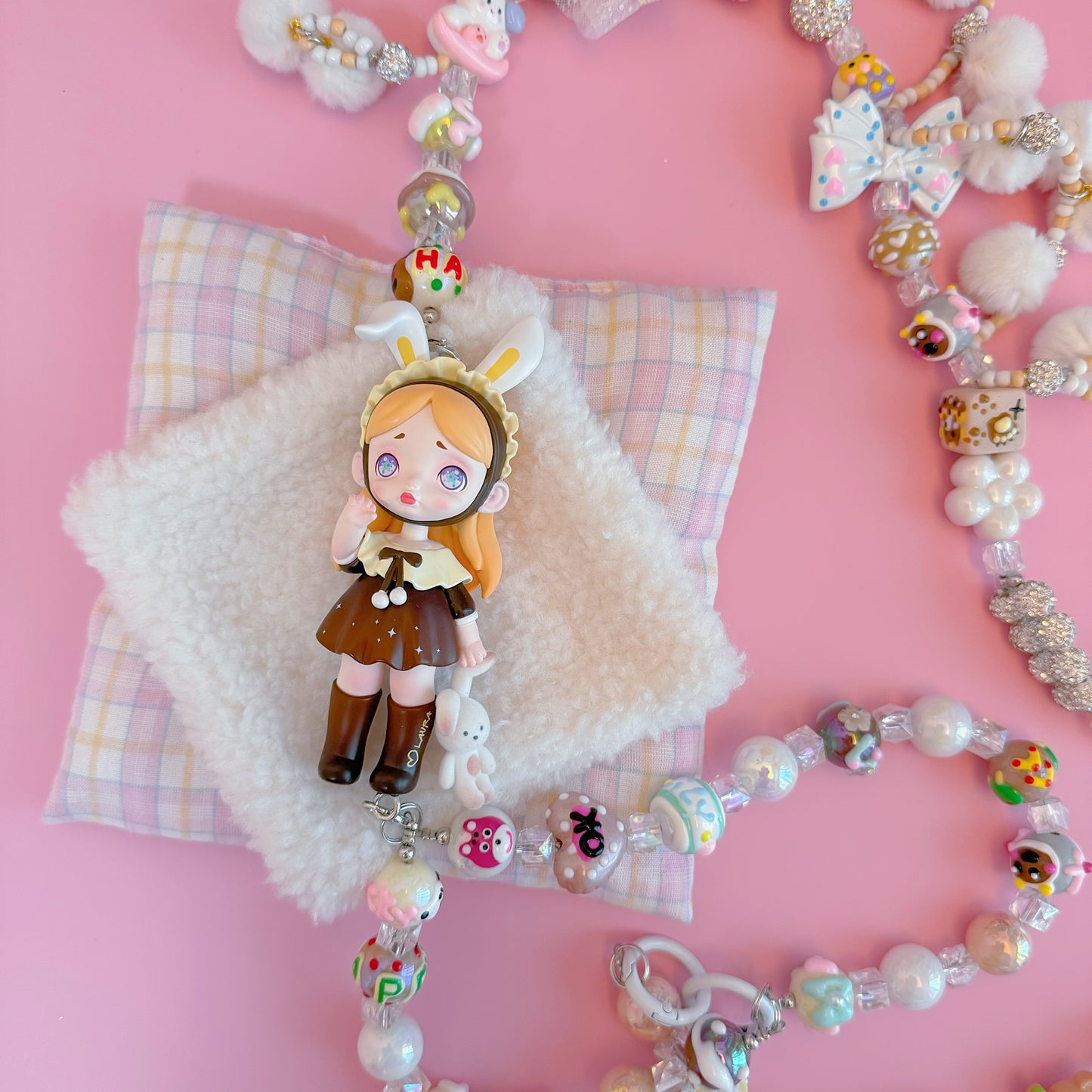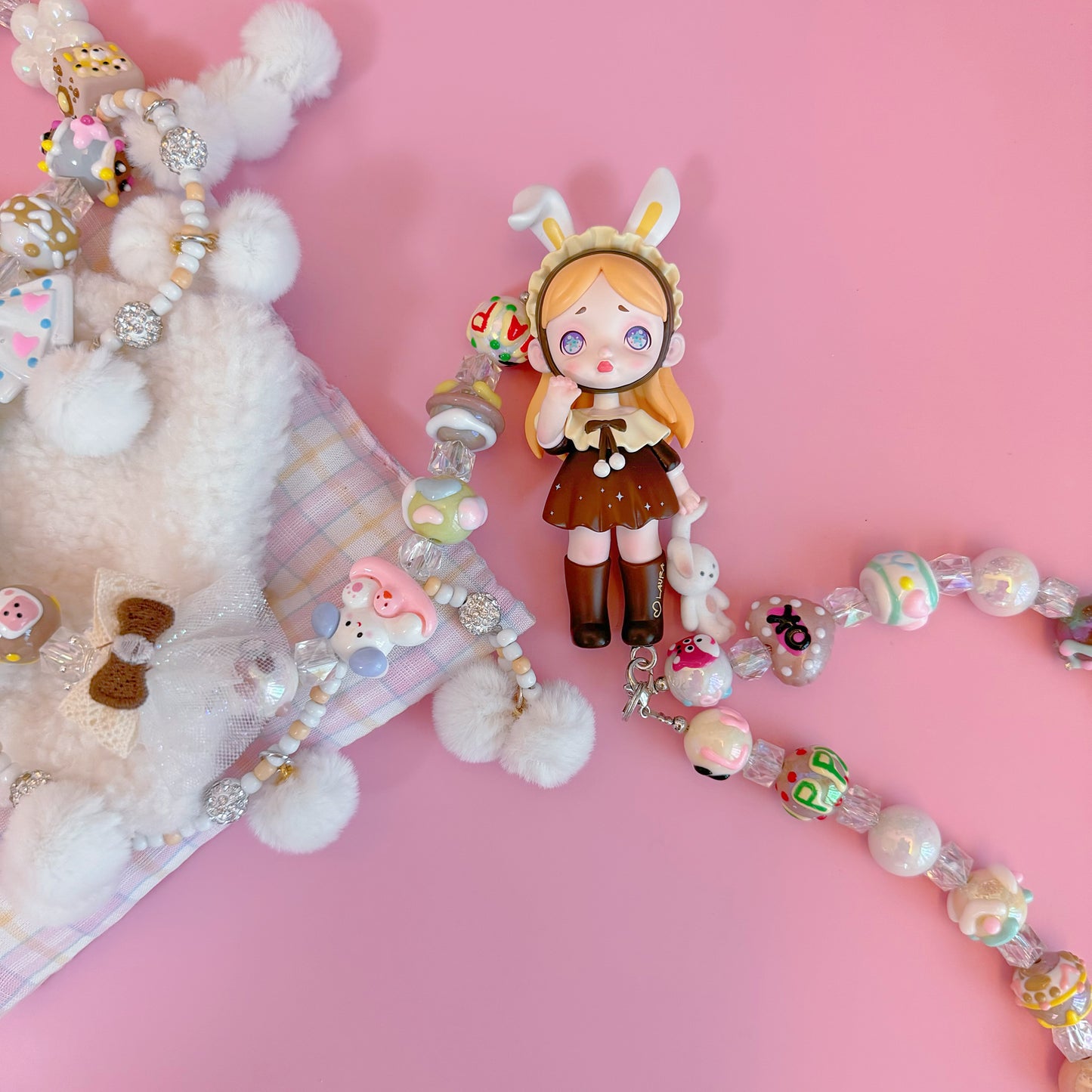 Hi there! This is a limited edition handmade mobile phone chain and bag chain pendants, made of mini hairballs, hand-painted beads and high-grade metal. If you want to change your role, you can send me a private message through ins or emails. It is unique, and you can give it as a gift to your family and friends, I believe she will love it